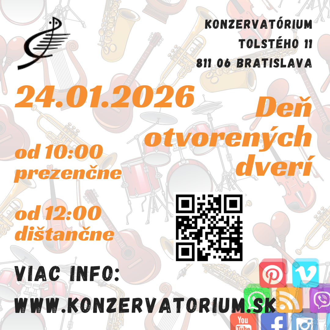 - od 10:00 hod. do 12:00 hod. prezenčne v budove Konzervatória na Tolstého ulici; registrácia bude prebiehať od 9:30 do 10:30 hod.
